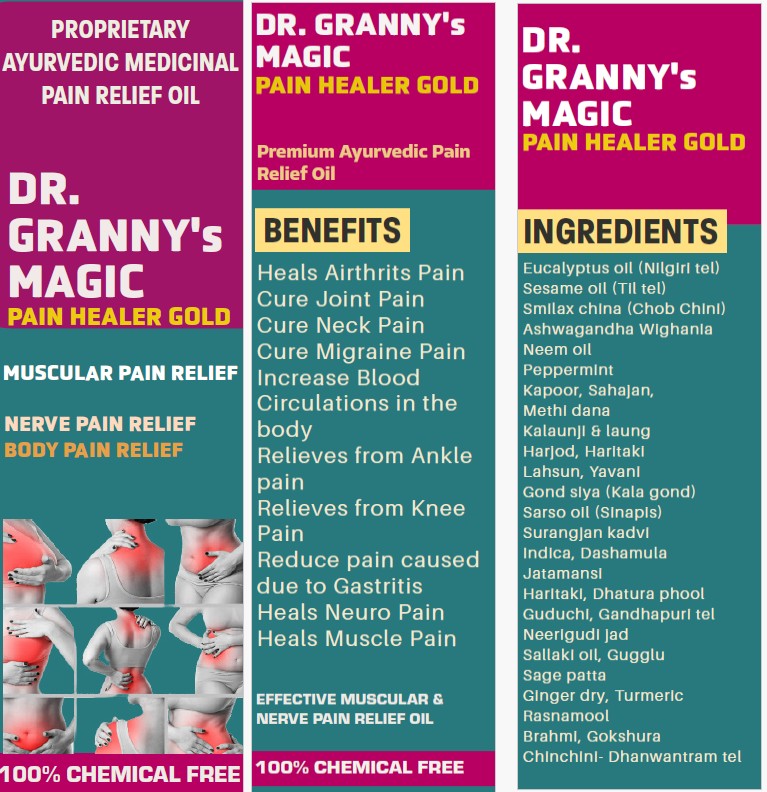 Experience instant pain relief — naturally and safely with Dr. Granny's Magic Pain Healer Gold Ayurvedic Pain Relief Oil